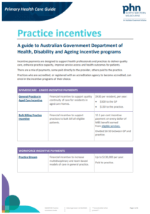 North Western Melbourne Primary Health Network’s primary care team has developed a guide to Australian Government Department of Health, Disability and Ageing incentive programs.