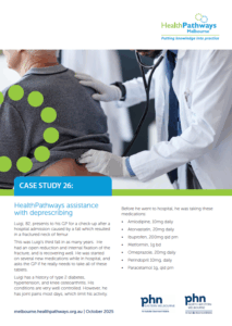 This was Luigi’s third fall in as many years. He had an open reduction and internal fixation of the fracture, and is recovering well. He was started on several new medications while in hospital, and asks the GP if he really needs to take all of these tablets.