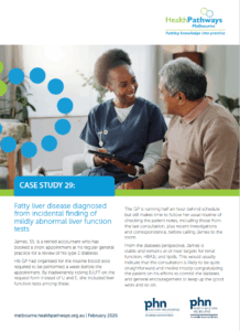 His GP had organised for the routine blood tests required to be performed a week before the appointment. By inadvertently ticking E/LFT on the request form instead of U and E, she included liver function tests among these. Results show raised values for AST of 88 U/L (normal range for lab 5-40 U/L) and ALT of 65 U/L (normal range for lab 7-56 U/L) among otherwise normal LFT values. The GP notices that there were similar levels on the test at the last review.