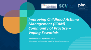 This community of practice (CoP) session explores the intersection between vaping and respiratory health in adolescents, with a focus on asthma management. This session also includes the pharmacology of vaping, use of vapes in community, motivational counselling for vaping cessation and other practicalities.